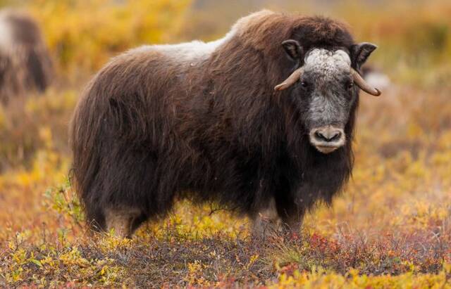 рис. 16, овцебык.[/float]В общей сложности флора Канадского архипелага насчитывает порядка 340 видов высших растений (мохообразные, папоротниковидные, плауновидные, голосеменные и покрытосеменные), а также свыше 300 видов мхов, около 100 видов печёночных мхов и от 550 до 600 видов лишайников. На территории архипелага отсутствуют деревья, и по мере продвижения на север архипелага постепенно снижается число других представленных видов растений.